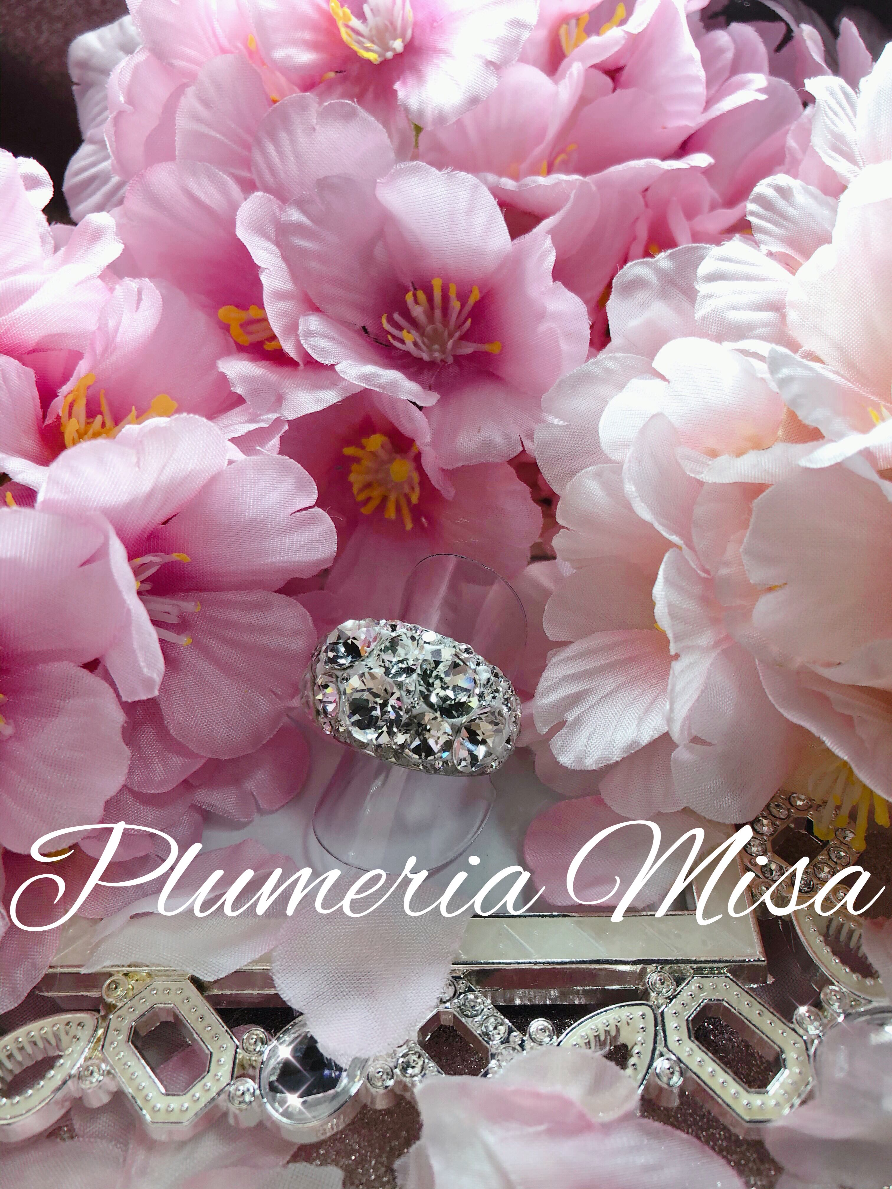 ニッケルフリーロジウムメッキ、18kメッキの土台に、高級クリスタルカットガラスを使用した煌びやかでゴージャス、カジュアル〜ドレスアップ、和装にもマッチするringです。