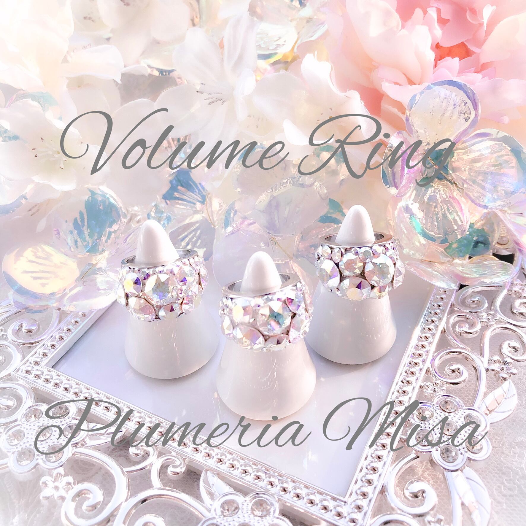 Plumeria Misaオリジナルのボリュームringです。ニッケルフリーロジウムメッキ、18kメッキ加工、高級クリスタルカットガラスを使用した煌びやかでゴージャスな輝き美しいringです。